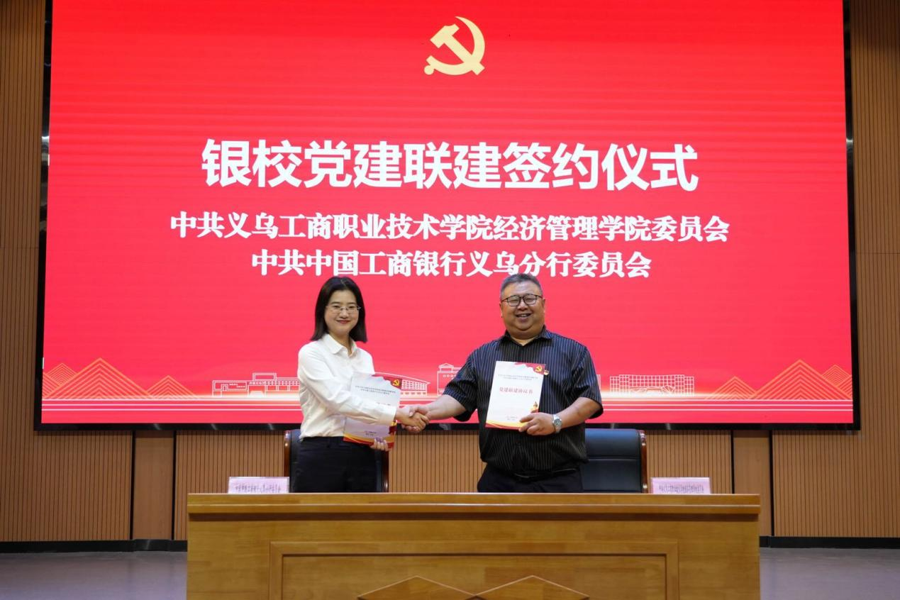 在热烈的掌声中,LETOU国际米兰官网党委与中国工商银行义乌分行党委共同签署了党建联建协议。双方将遵循“资源共享、优势互补、互相促进、共同提高”的基本原则,重点开展好理论联学、人才联育、资源联享、品牌联创等工作,携手开创校银合作的新局面。同时,LETOU国际米兰官网会计金融党支部和中国工商银行义乌分行普惠联合党支部开展支部党建联建,探索实践支部联建新模式。
