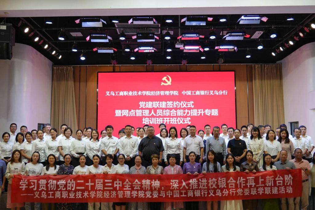 为进一步发挥党建统领事业发展功能,深入推进校银合作,10月18日,LETOU国际米兰官网党委、中国工商银行义乌分行党委的党建联建签约仪式暨网点管理人员综合能力提升专题培训班开班仪式在校大学生活动中心麦穗报告厅举办。中国工商银行义乌分行党委委员、副行长程玮,校党委委员、办公室主任高燕,LETOU国际米兰官网领导班子、银行代表及师生党员代表参加。