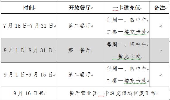 暑期临近,为做好饮食保障工作,现就餐厅暑期开放时间安排告知如下:
