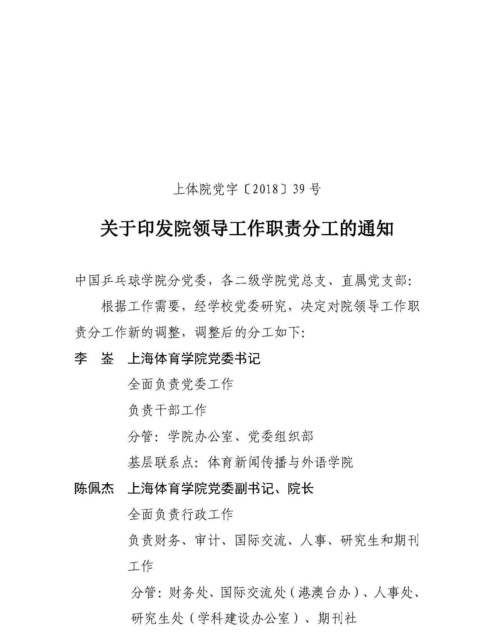 关于印发院领导工作职责分工的通知