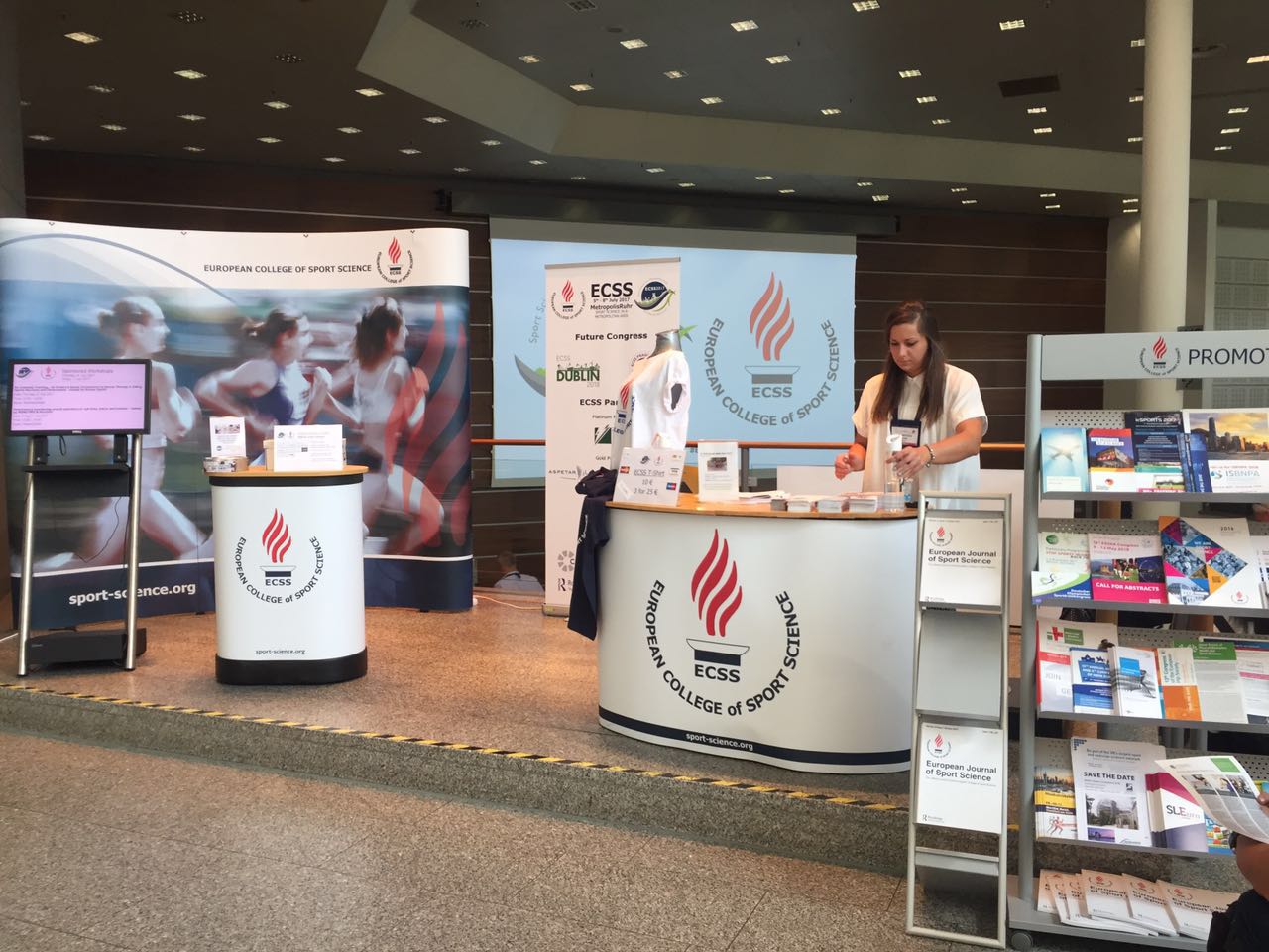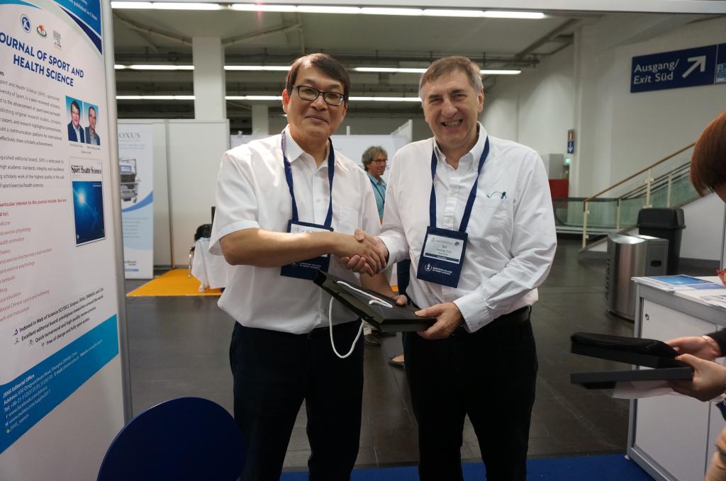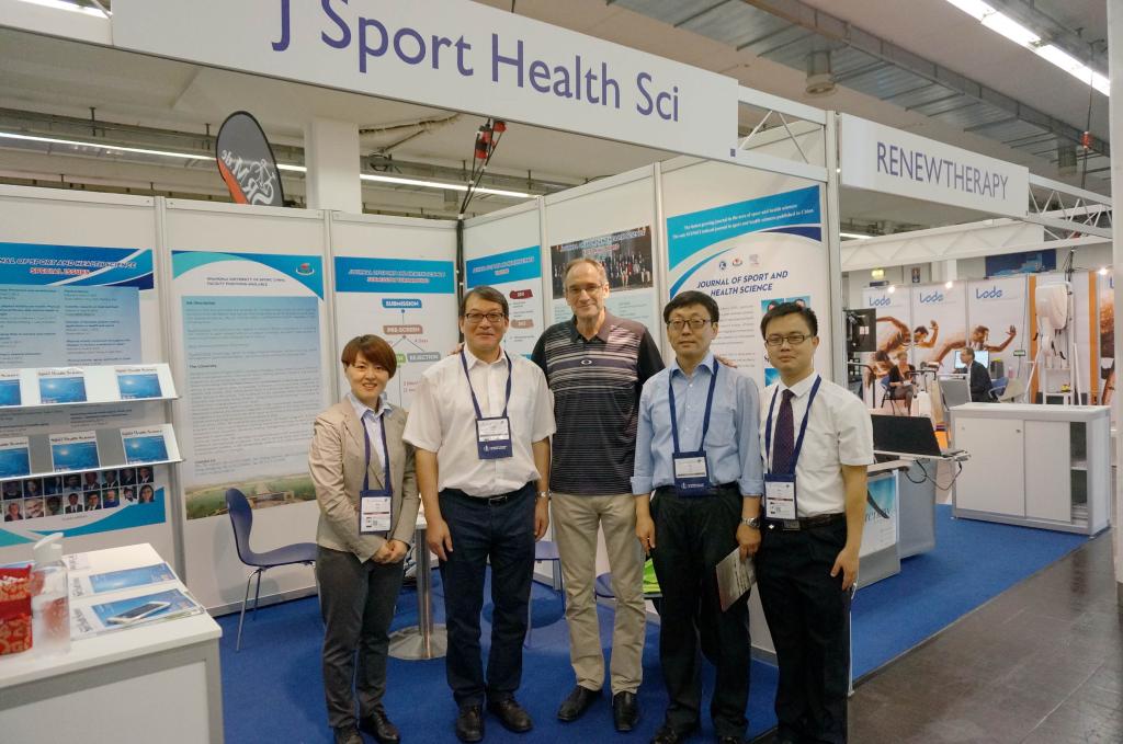 本网讯 第22届欧洲体育科学学会(ECSS)年会于7月5~8日在德国埃森国际会展中心举行,本次年会的主题是:大都会区域中的体育科学(Sport Science in a Metropolitan Area)。来自欧洲与世界各地的2300余名学者参加此次大会。上海体育学院主办的《运动与健康科学(英文)》杂志首次以展商身份参加ECSS年会,也是参加该展会的唯一中国展商。杂志联合主编上海体育学院院长陈佩杰教授、加拿大卡尔加里大学Walter Herzog教授,副主编上海体育学院运动科学学院院长刘宇教授、英国埃克塞特大学Neil Armstrong教授,以及部分编委德国弗莱堡大学Albert Gollhofer教授,德国科隆体育大学Stefan Schneider教授,美国亚利桑那州立大学Barbara E. Ainsworth教授,美国阿巴拉契亚州立大学David C. Nieman教授等出席大会,并莅临杂志展位与众多国际学者进行交流。