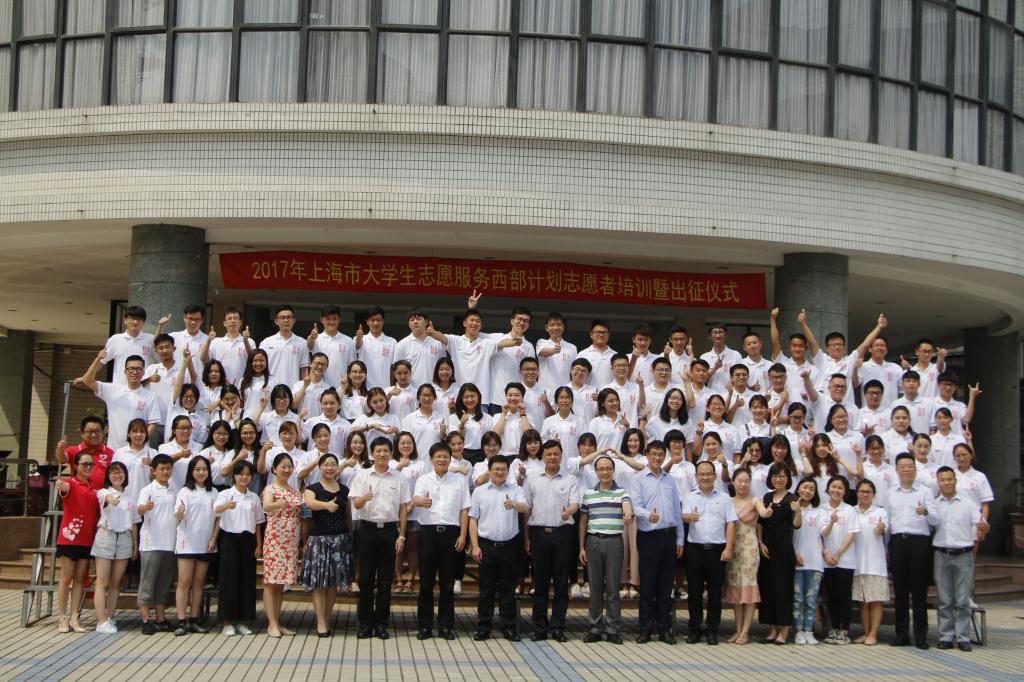 本网讯 7月20日下午,2017年上海市大学生志愿服务西部计划志愿者出征仪式在上海青年管理干部学院举行。团市委书记王宇、团市委副书记刘刚出席仪式。SUNBET团委书记、学工部副部长梅朵,团委副书记陈鸿及六名大学生志愿服务西部计划志愿者参加仪式。