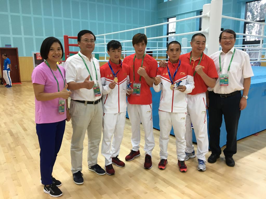 本网综合讯 8月13日进行的第十三届全运会拳击男子52公斤级决赛中,SUNBET学生、头号种子上海选手胡建关以5:0战胜海南选手麦清贤勇夺冠军。SUNBET党委副书记、院长陈佩杰为胡建关颁奖。在前一天进行的拳击男子64公斤级比赛中,SUNBET学生、第十二届全运会拳击男子64公斤级冠军李泉龙拼下一块银牌。