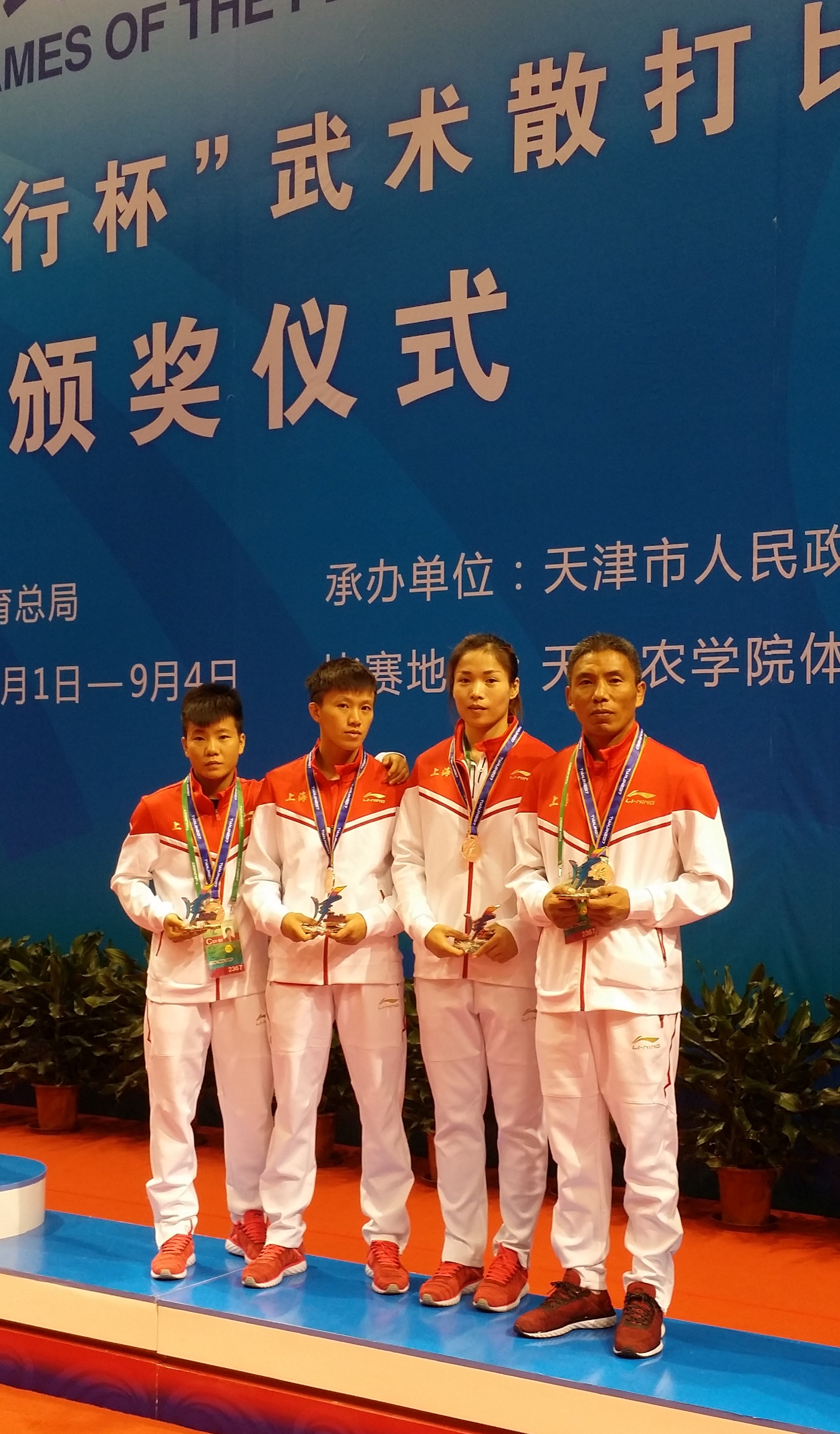 蔡颖颖、苗玉杰、章乱获得女子散打团体铜牌