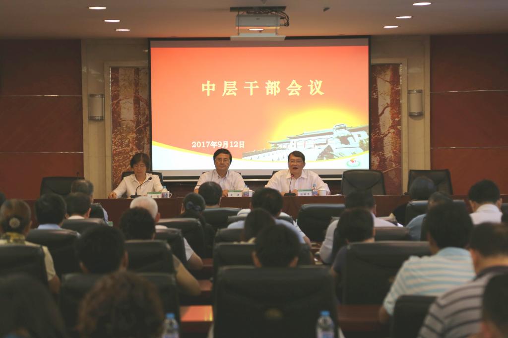 本网讯 9月12日下午,上海体育学院新学期中层干部大会在图文信息楼第二会议室召开。党委书记戴健出席会议并讲话,党委副书记、院长陈佩杰部署学校下半年重点工作。副院长平杰、施之皓、毛丽娟、王兴放出席会议,会议由党委副书记、纪委书记詹萌主持。