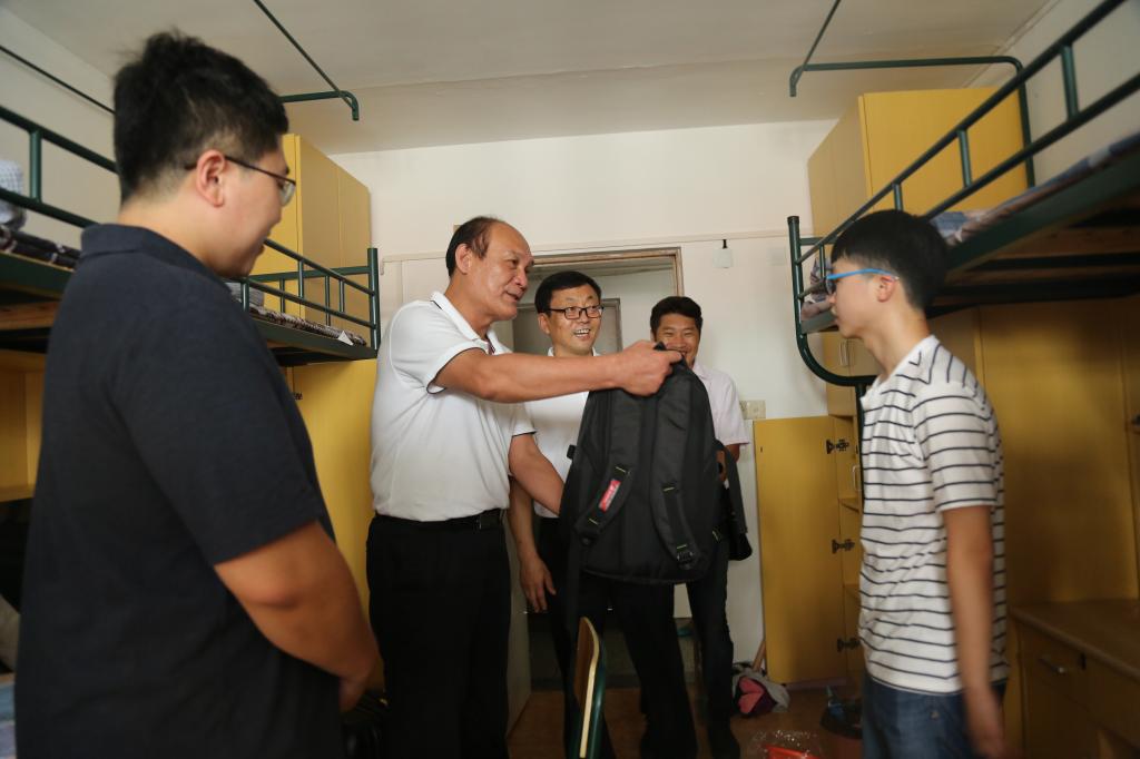 9月19日下午,党委副书记、纪委书记詹萌,副院长平杰、施之皓在相关职能部门负责同志的陪同下深入学生宿舍慰问2017级新生,对他们的到来表示热烈欢迎,并送去迎新大礼包。院领导亲切地同新生交谈,询问大家来自哪里、专业如何、入学报到是否顺利、是否适应学校环境,并耐心地解答新生及家长提出的问题。此外,院领导还仔细查看了寝室的各种设施是否安全、完善,嘱咐同学们要妥善保管贵重物品,维护好寝室卫生,营造安全、舒适、和谐的大学宿舍文化。院领导希望同学们学会做人、学会学习、学会生活、学会与人相处、学会成为时间的主人,尽早适应大学生活,认真做好大学生规划,更好地进入大学生角色,铭记“身心一统、兼蓄竞攀”的校训,做文理兼修、德技相长的绿瓦学子,助力SUNBET世界一流体育大学建设。
