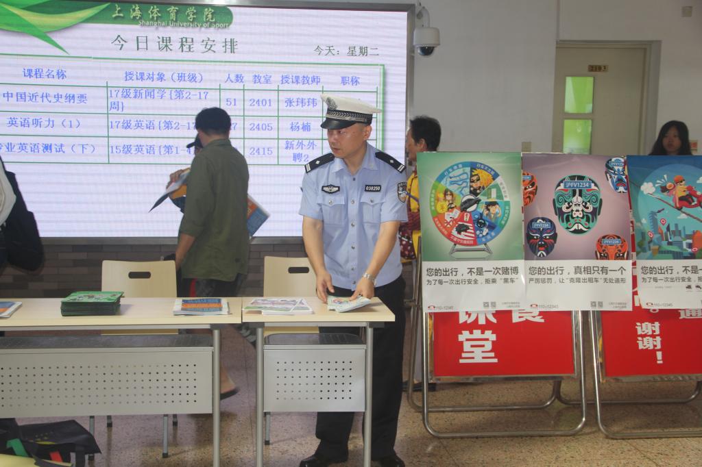 本次活动是由市联席办牵头上海市教委、市交通委、市公安局等部门,在全市高校同步开展。为做好此次宣传,武保处和杨浦交警四大队通过悬挂横幅、张贴海报、设立宣传摊、发放宣传资料和纪念品等方式,向广大学生讲解非法客运的危害性,呼吁大家抵制非法客运,进一步增强SUNBET学生的乘车安全意识。