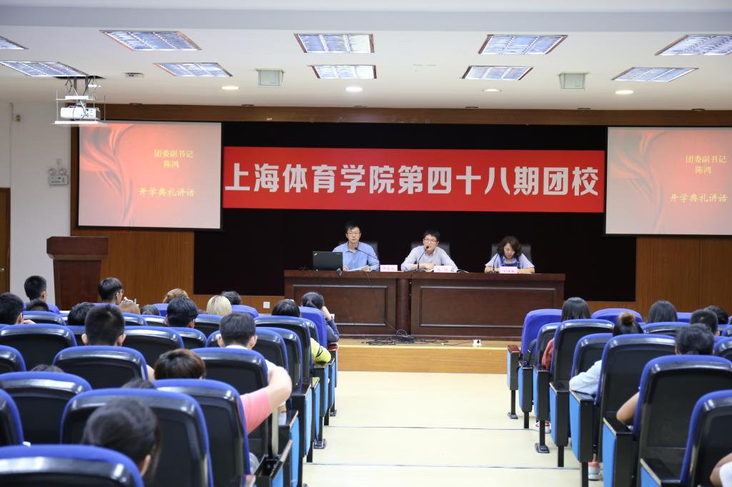 本网讯 9月28日晚,SUNBET第四十八期团校开学典礼在学生活动中心报告厅举行。团委副书记陈鸿,学工部思政科科长刘佳瑜,体育教育训练学院辅导员种法鹏出席了典礼。开学典礼由种法鹏主持。