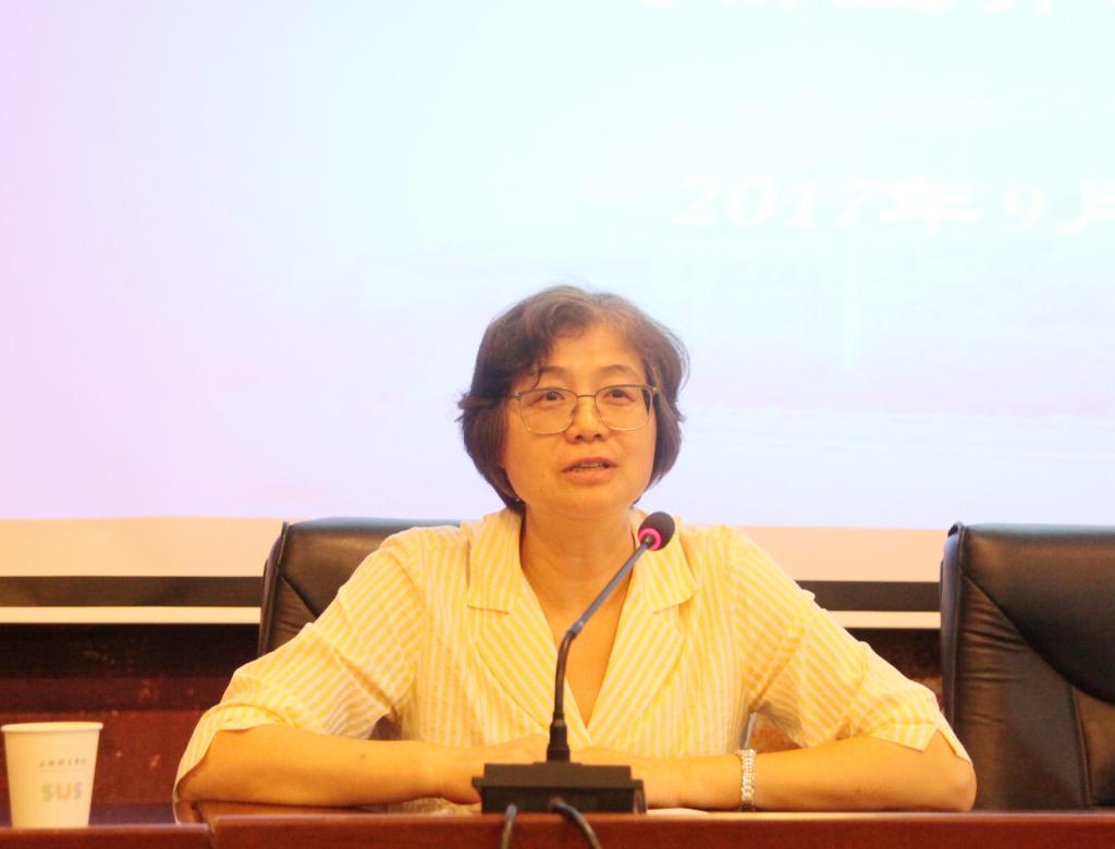 詹萌书记致辞,詹书记代表上海体育学院热烈欢迎中国乒乓球学院2017级全体新生的到来。她向新生寄托了几点希望:希望同学们能在大学里做一名有理想,有追求,有梦想的大学生;希望同学们在学习之余积极参加学校举办的各项活动,多多参与学生社团,多接触不同的事物和不同学院的同学,不断提高自己的能力水平,丰富自己的思想。