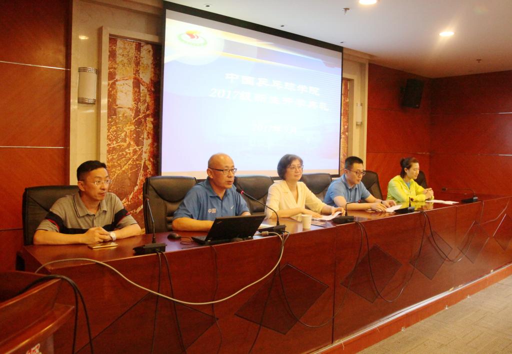 本网讯 9月28日中午,中国乒乓球学院2017级新生开学典礼在SUNBET图文信息楼第二会议室举行。上海体育学院党委副书记、纪委书记詹萌,上海体育学院副院长、中国乒乓球学院院长施之皓,中国乒乓球学院副院长任杰出席了本次活动。开学典礼特邀乒乓球大满贯、中国乒乓球学院2017级硕士新生代表丁宁出席。典礼由中国乒乓球学院分党委副书记、副院长李汶凯主持。