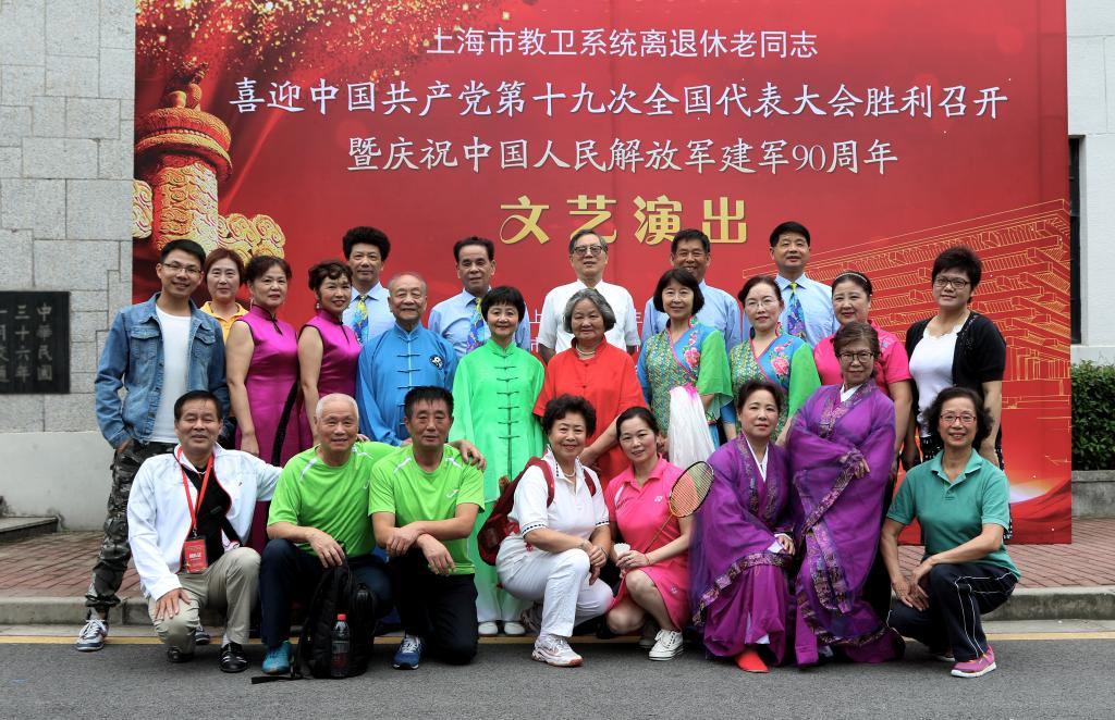 本网讯 国庆节前夕,9月29日下午,上海市教卫系统离退休老同志“喜迎“十九大”胜利召开暨庆祝建军九十周年”文艺演出在上海交通大学文治堂隆重举行。经组委会精选出来的来自18所高校精心准备的节目,展现出老同志的独特优势,全场洋溢着喜庆,充满了正能量。演出共18个节目,分上、下篇,最后全场在《没有共产党就没有新中国》的豪迈歌声中落下帷幕。