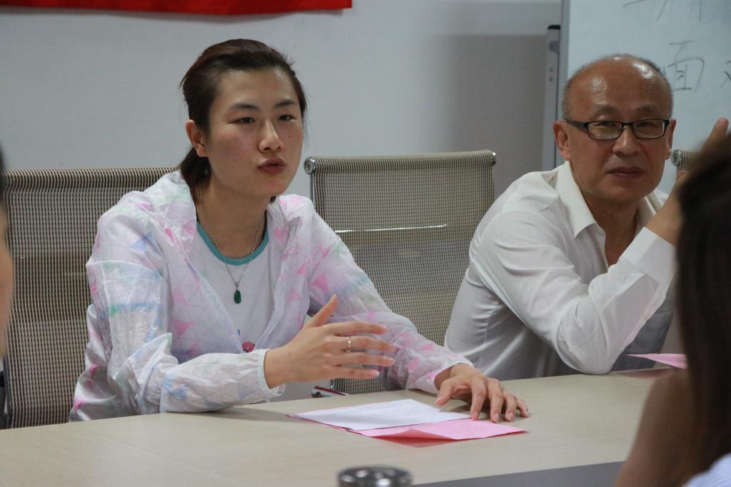 会议在热烈的掌声中开始。首先,丁宁跟大家分享了其从运动员到共产党员再到十九大党代表的心路历程。她回顾了自己2015年正式入党的情景,当时正值伦敦奥运会备战期间,那是她首次出征奥运会,能够在奥运前夕正式加入共产党,成为一名光荣的共产党员,内心感到无比自豪,她也对自己提出了更高的要求。成为十九大党代表,丁宁倍感荣幸,直言这是党组织和人民对体育人的信任,也是党组织和人民赋予的责任,成为十九大党代表是国乒集体的荣誉。丁宁表示自己将履行好党代表职责,不辜负党和人民对自己的信赖与期望。