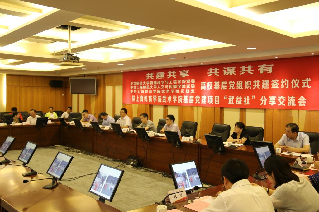 武术学院党总支结合“两学一做”学习教育活动,深入推进高校基层党组织“互帮互促、共建共联”工作,不断放大高校基层党组织的整体功效,共同提高基层党组织的创造力、凝聚力和影响力。与同济大学物理学院、上师大人文学院开展高校基层党组织主动对接、结对共建,实现资源共享、优势互补,以共建谋发展,努力开创高校基层党组织建设新局面,确保共建工作扎实有效地开展。建立工作责任机制,制定基层党组织党建责任清单,通过党建资源共享共建、思政教育资源共通共有、学术科研共谋共进、社会服务基地共营共管等措施,逐步实现甲乙丙三方优势互补、工作互动,从而真正把高校基层党建工作落到实处。与上海市委党校合作,建立市委党校教育基地,成为市委党校培训班武术文化之旅项目基地。与杨浦区委合作,将中国武术博物馆建为杨浦区党员教育基地,较好地发挥了武术学院的相关资源,为党建联建共建发挥了积极的作用。
