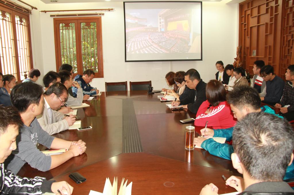 10月18日上午9点,武术学院党总支组织学院领导班子、全体教师、学生代表共40余人在学院会议室收看了党的十九大开幕会。全体师生认真聆听了习近平总书记代表十八届中央委员会作的题为《决胜全面建成小康社会,夺取新时代中国特色社会主义伟大胜利》的报告。收看完开幕会后,戴国斌院长组织大家进行了认真的讨论,大家一致认为习近平总书记的报告高屋建瓴,为我国今后一段时期稳定健康发展指明了方向。总书记强调开拓事业要不畏艰难,武术学院也要秉承这种决心,在这个伟大的时代,我们要主动对接学校“双一流”建设,力争培养更多优质人才,推动学院健康发展,为学校推进世界一流体育大学建设贡献力量。