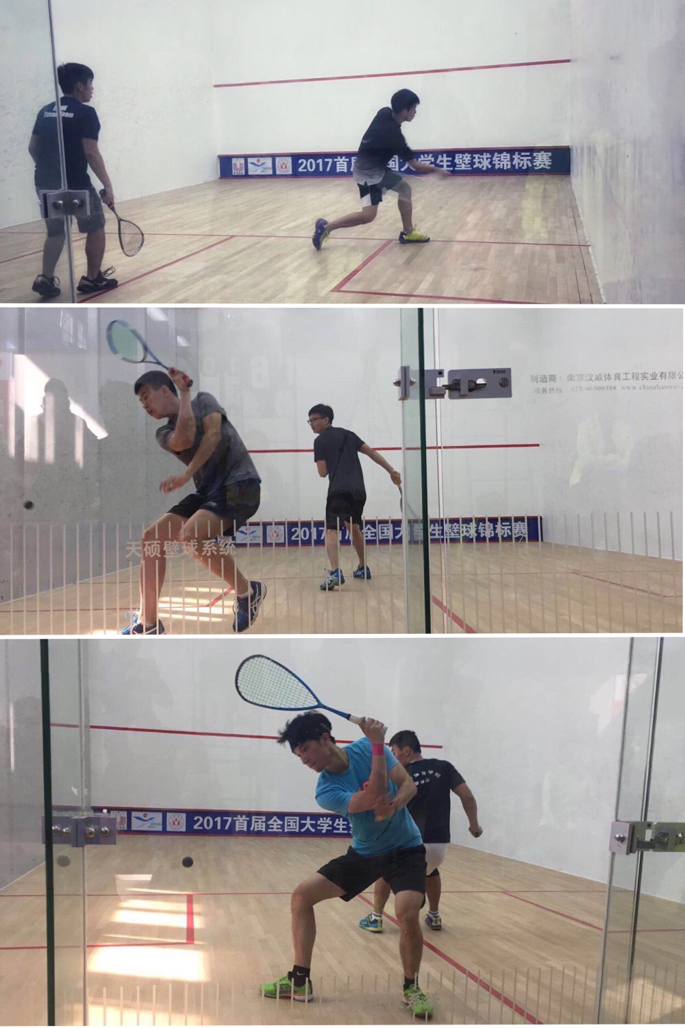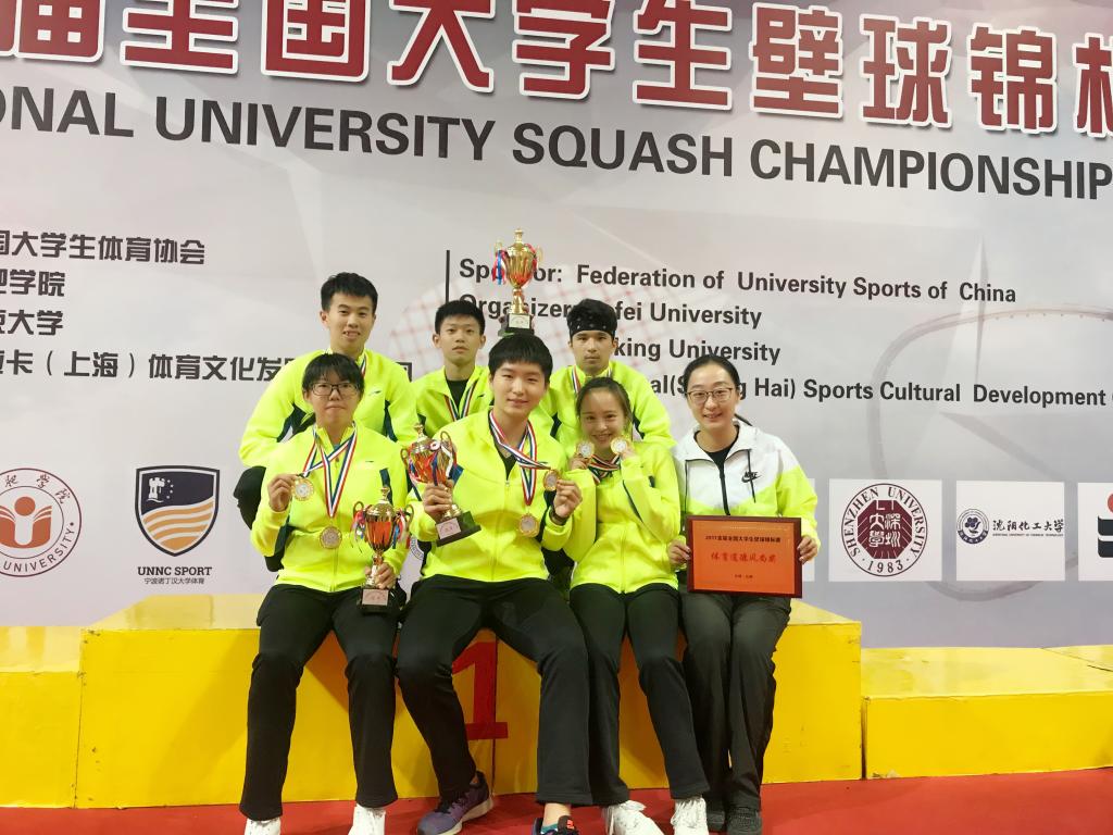 本网讯 10月26日,首届全国大学生壁球锦标赛在合肥学院体育馆拉开帷幕。比赛共设总团体、男女团体和男女单打五个项目,在为期四天的比赛中,来自全国各地的高校学生展开了激烈的角逐。在学校的大力支持下,本次比赛上海体育学院共派出6名运动员参赛,运动员在赛场上顽强拼搏、挥洒汗水,夺得四金两银的好成绩。