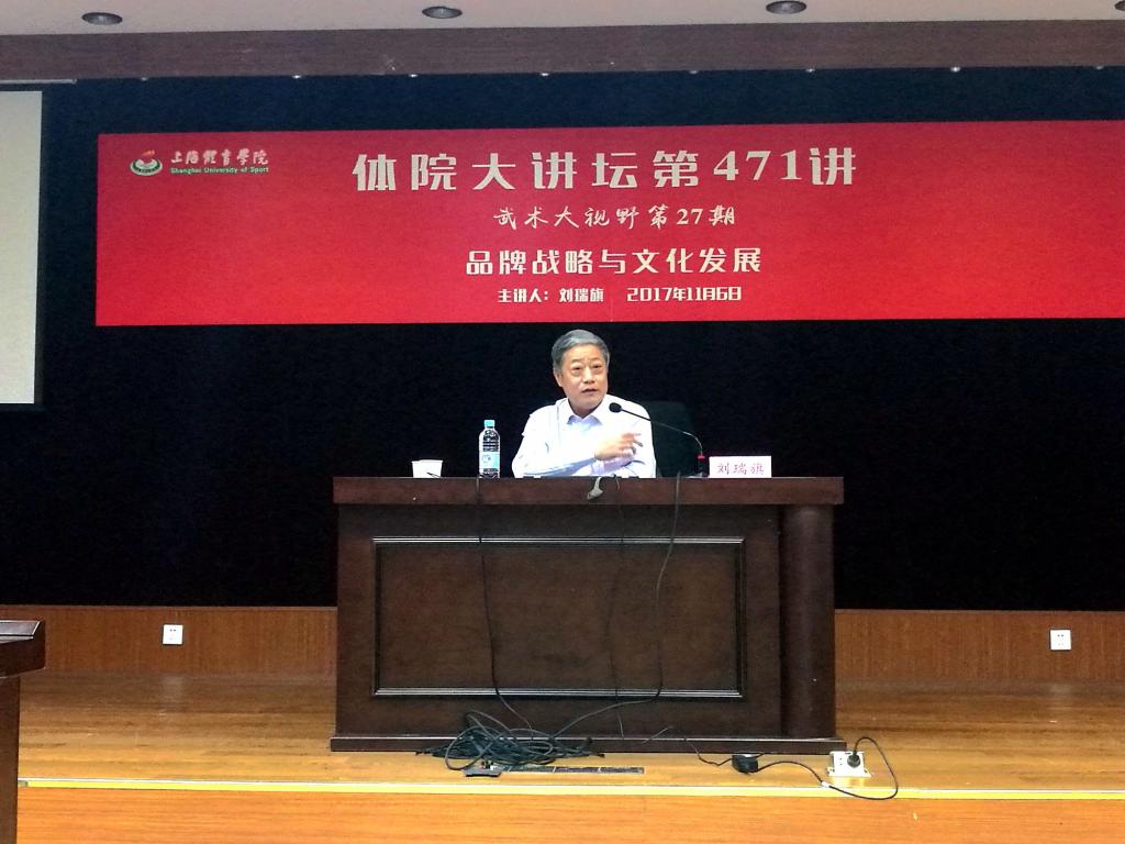 本网讯 11月6日晚上,恒源祥集团董事长刘瑞旗应上海体育学院邀请,在学生活动中心报告厅进行了《品牌战略与文化发展》主题讲座,本次讲座既是体院大讲坛471讲,同时也是武术大视野第27讲。讲座由武术学院党总支书记霍圣录主持,百余名上体师生参加了本次讲座。
