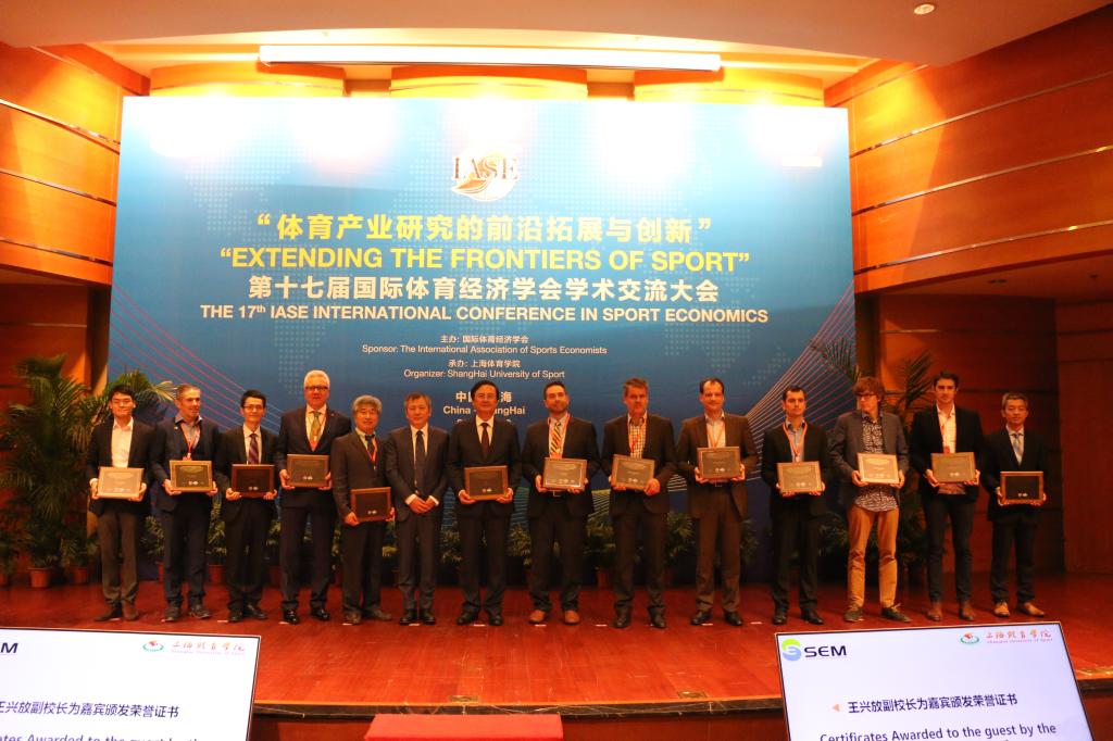 国际体育经济学会主席Joel Maxcy在致辞中感谢上海体育学院对国际体育经济学会工作的支持,期待此次会议成为一次富有成效和广泛交流的盛会,同时也表示国际体育经济学会将在未来与上海体育学院开展更多的国际合作。上海体育学院副院长王兴放为大会嘉宾颁发荣誉证书。开幕仪式由经济管理学院院长曹可强主持。