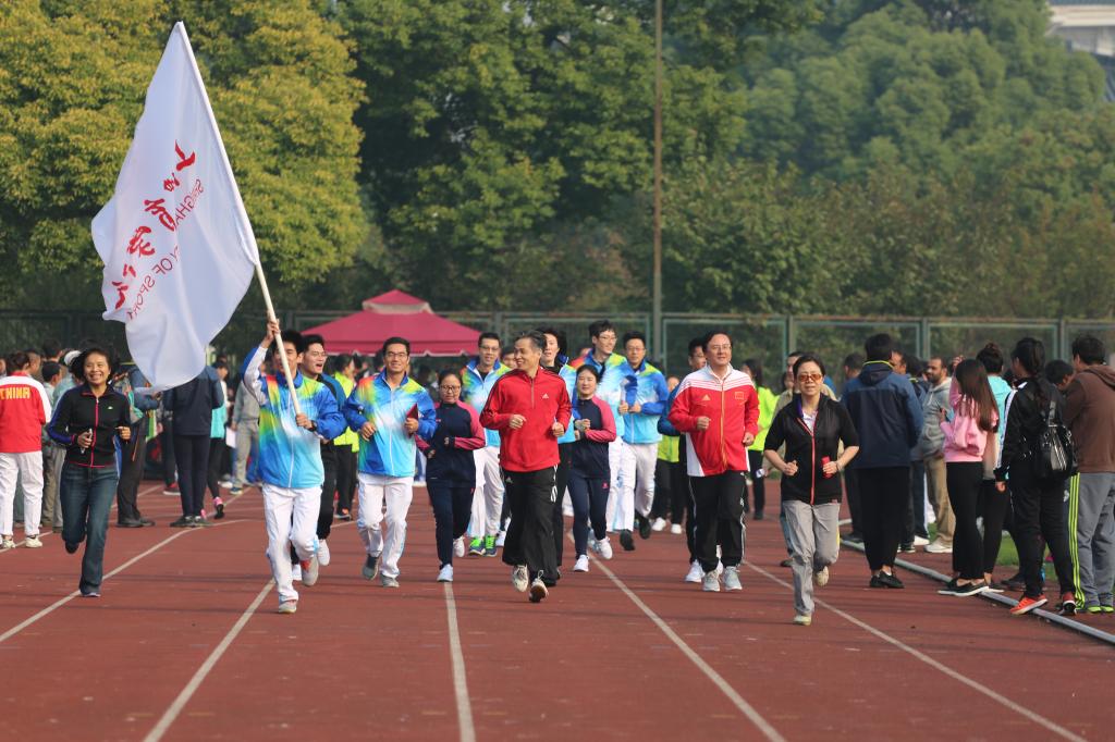 在开幕式之后,戴健为教职工健身长跑鸣枪发令,校庆运动会田径比赛也随之正式拉开了序幕。本次田径比赛共设置12个大项,共有来全校624名学生报名参赛。