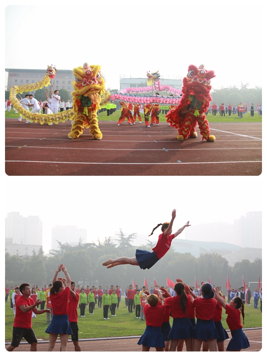 在入场仪式环节,中国乒乓球学院代表队、机关代表队、后勤服务中心代表队和运科学院代表队等十二支队伍,身着统一服装、伴着嘹亮的口号、迈着整齐的步伐,意气风发的依次走过主席台,接受校领导检阅。来自武术学院、三林龙狮队和体育教育训练学院的同学们随即登场,为全场师生献上了精彩绝伦的龙狮和技巧表演。