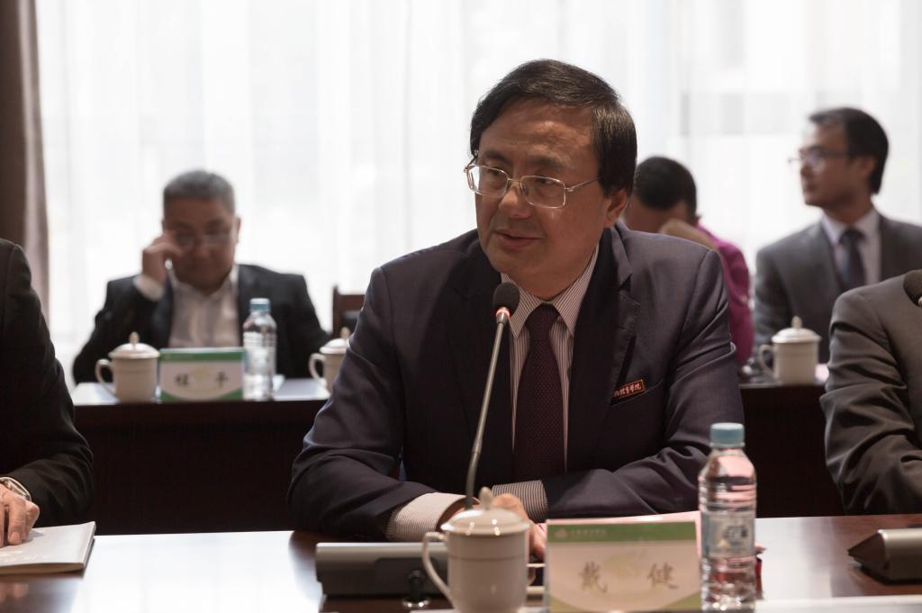 戴健代表上海体育学院致欢迎辞。致辞中提到校企合作是学校和企业双方共同参与人才的培养过程,采用课堂教学与学生参加实际工作有机结合的方式,培养企业所需应用型人才的办学模式,也即是一种以市场和社会需求为导向的学校运行机制;学校将坚定不移的走产、学、研、用一体化的道路,要在与企业的合作中实现优势互补、利益共享。戴健表示,上海体育学院正不断扩大国际合作,加强国际影响力,集聚国际人才,为中国体育产业培养高层次人才而努力。这一切都离不开与各企业的合作,因此本次校企合作签约也严格筛选了6家行业典范、具有引领地位的企业。希望通过校企合作能为体育产业的科研创新做出更多贡献,为上海体育学院培养更多符合社会要求的人才。