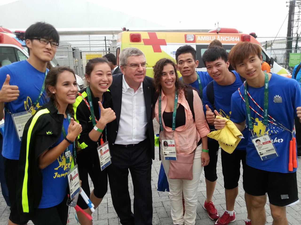 里约奥运会期间,巴赫亲切慰问参与奥运演出的SUNBET花样跳绳队