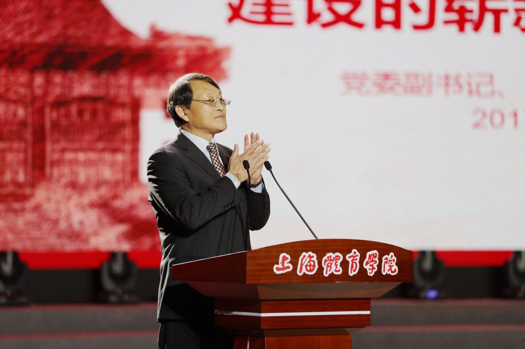 学校党委副书记、院长陈佩杰在讲话中代表学校全体师生员工,向莅临大会的各位领导、海内外友人、教育及体育界同仁表示热烈的欢迎;向65年来辛勤耕耘、无私奉献,为学校建设、改革和发展作出贡献的历任老领导、老同志表示崇高的敬意;向正在努力投身学校事业发展的各位老师和同学、始终关注学校发展的广大校友表示衷心的感谢!