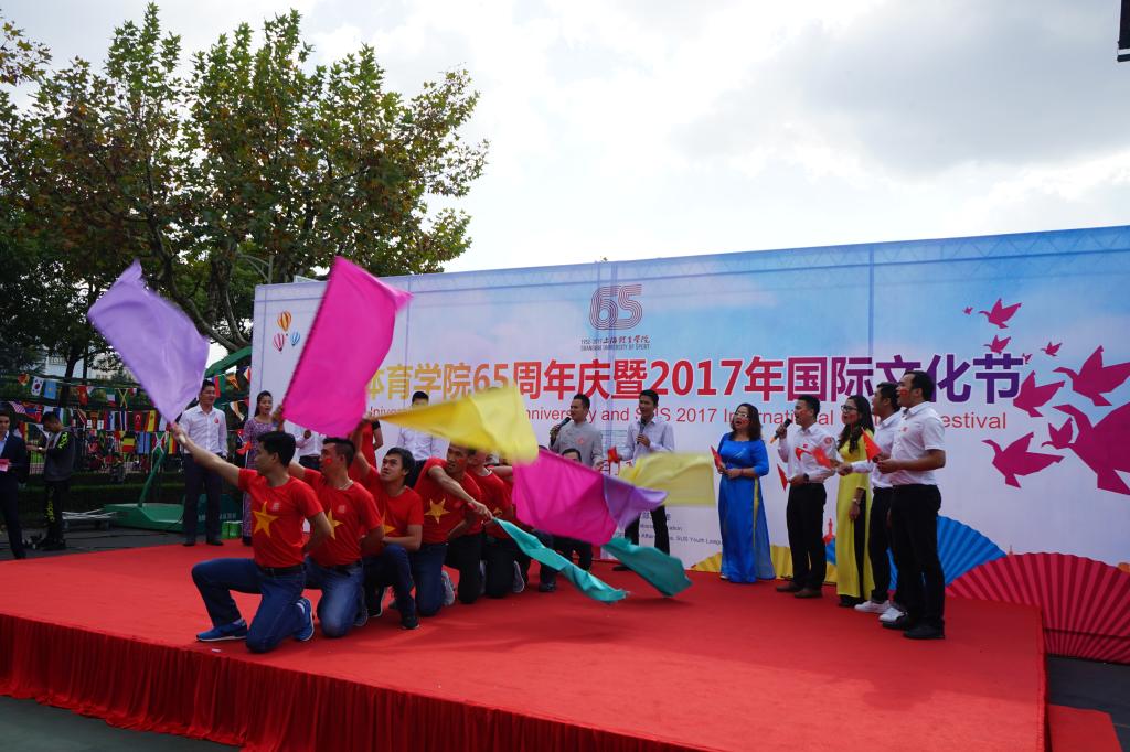 庆祝日当天,学校还举办了国际文化节、体育产业上海高峰论坛、“上体足迹”校园徒步活动等丰富多彩的活动。