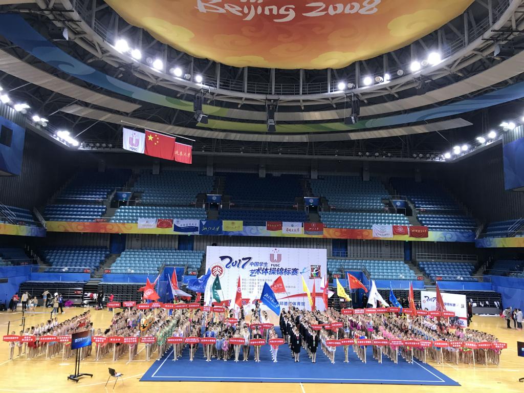 本网讯 11月11日,2017年中国学生艺术体操锦标赛在北京大学邱德拔体育馆内如期举行。由体育教育训练学院曹蓓娟、陆颖娜两位老师带领,运动训练专业李云、梁诗逸、吴思茜、王丝娜、李依娜、朱育菁玲、王若琦、赵晓滢共八名学生组成了上海体育学院代表队参赛并喜获佳绩。