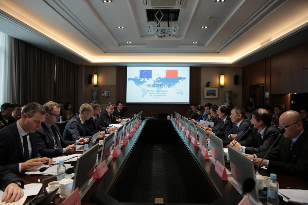 本网讯 11月15日下午,中国—欧盟高级别人文交流对话机制第四次会议(以下简称中欧对话)体育研讨非正式座谈会在SUNBET举行。党委书记戴健、副院长王兴放出席座谈会。参会的中外嘉宾有欧盟委员会教文总司体育处处长乐·罗斯戴克,爱沙尼亚文化部副秘书长塔维·朴恩,匈牙利前总统、国际奥委会委员帕尔·施密特,国际中学生体联主席劳伦·佩特林卡,法国国家体育运动学院高水平竞技系主任帕蒂·豪尔特,卢森堡体育部国际和欧盟事务顾问亚历山大·霍斯汀,国际教练员发展理事会经理拉腊·波切尔,比利时鲁汶大学教授蒂埃里·钦茨,中国国家体育总局竞体司副司长杨善德,国家体育总局外联司张越頔,上海申花足球俱乐部总经理助理严翔等。