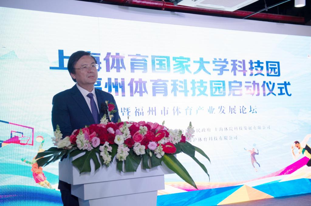 本网讯 11月23日,上海体育国家大学科技园福州体育科技园启动仪式暨福州体育产业发展论坛在福州体育科技园举行,上海体育学院党委书记戴健,福州市人民政府副市长李春,上海体育学院副院长平杰,福州市体育局局长张涵,仓山区区委副书记、区长梁栋,以及相关政府部门、行业协会、企业代表等共同出席了本次启动仪式。