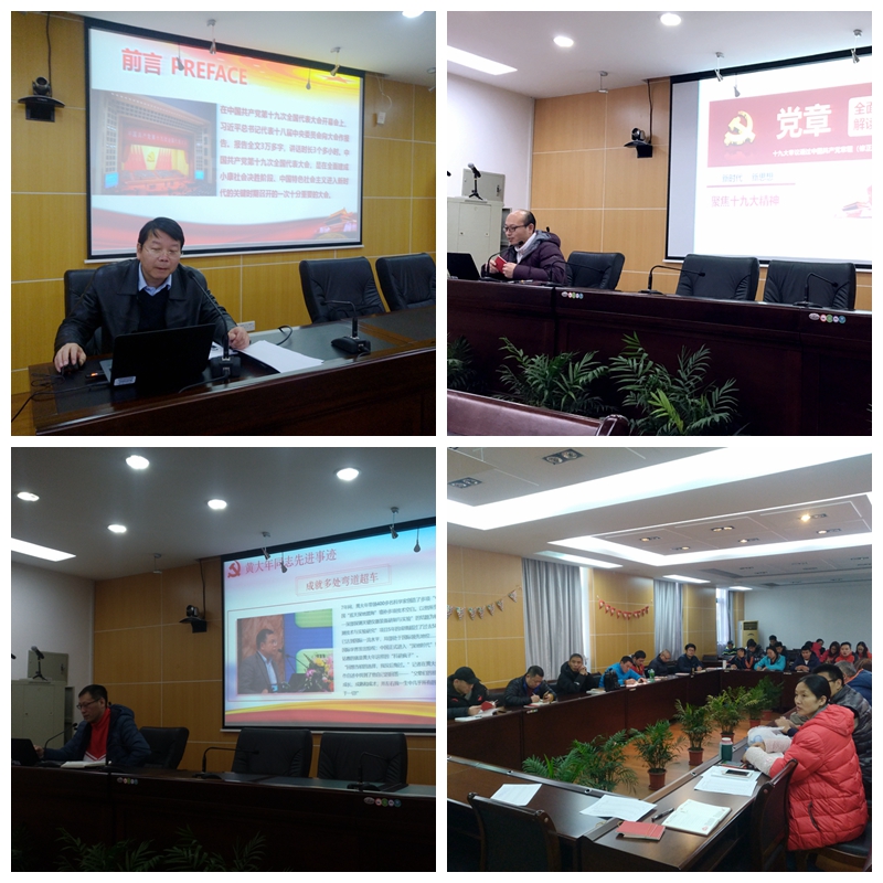 总支书记沈益民、竞校第一党支部书记王军、第二党支部书记刘敏分别为广大党员上党课。沈益民同志为大家解读十九大报告;王军同志带领大家共同学习黄大年同志先进事迹;刘敏同志带领大家学新党章、学新时代新思想。广大党员积极参与并认真做好笔记,收到了良好的学习效果。