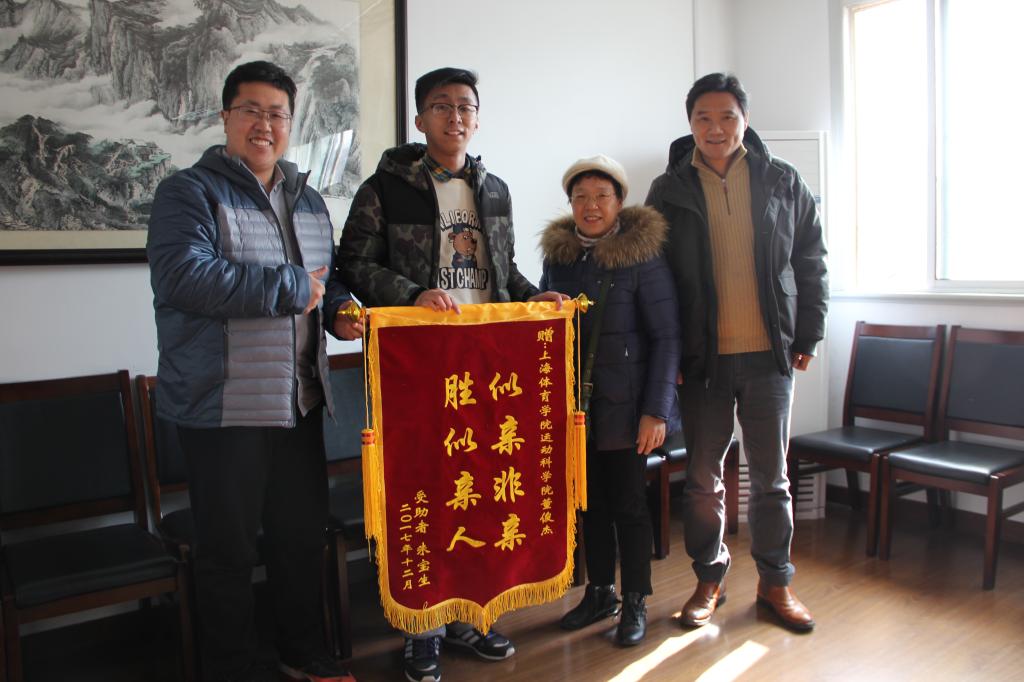 本网讯 12月25日中午,来自杨浦区中心医院的病患家属李晓珍阿姨代表病患受助者家庭向运科学院15级学生董俊杰同学送上锦旗和表扬信,感谢他在受助者家庭最需要帮助时,伸出援助之手。董俊杰在杨浦区中心医院担任志愿者时,听闻中风的李阿姨爱人行动不便,前往杨浦区中心医院就医困难,主动承担往返医院的接送工作,风雨无阻,每天坚持准时在受助者家庭小区门口推送叔叔前往医院,他的默默付出与坚持感动了老两口。