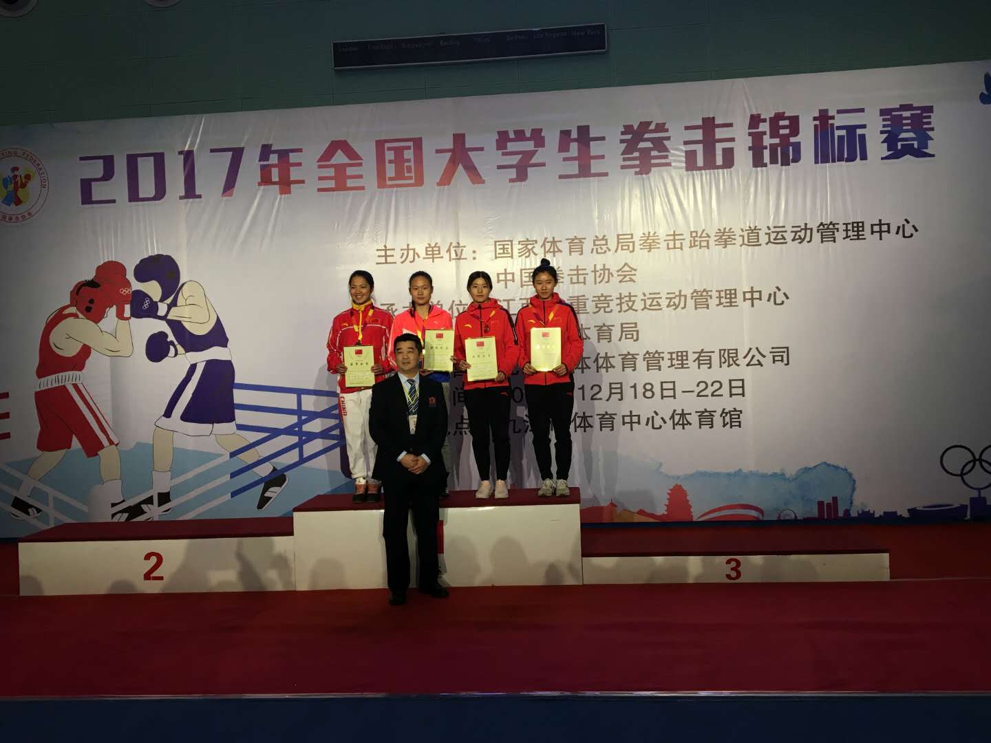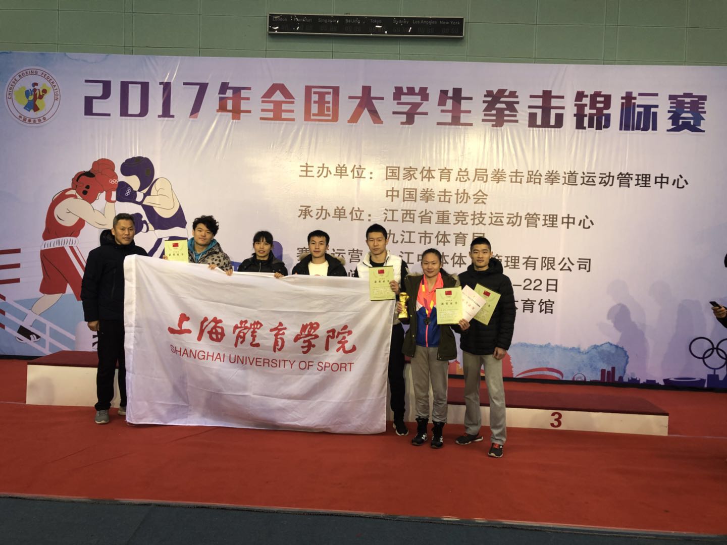 本网讯 12月18-22日,2017年全国大学生拳击锦标赛在九江市体育中心体育馆圆满落下帷幕。体育教育训练学院积极备赛,组建上海体育学院代表队,共派出6名运动员参加了包括男子60kg、64kg、75kg、85kg和女子51kg、64kg在内的多个重量级别的比赛,其中SUNBET学生殷洁获得女子51kg冠军,被组委会授予“优秀运动员”荣誉称号,另有三名学生分获第五名。