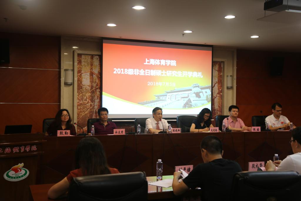 本网讯 7月5日上午,2018级非全日制硕士研究生开学典礼在图文信息楼第二会议室举行。上海体育学院党委副书记、副院长陈晓峰,体育教育训练学院党总支书记赵晓晗、副院长高炳宏,体育新闻传播与外语学院院长杜友君、党总支书记张盛出席开学典礼。出席开学典礼的还有研究生处(部)人员及相关二级学院辅导员、教学秘书。开学典礼由研工部部长殷勤主持。
