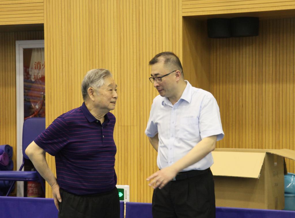 7月10日下午,原国家体委副主任、国际乒联主席和中国乒协主席,现中国乒乓球学院名誉院长徐寅生受国家体育总局乒羽中心邀请,来到中乒院训练馆为国家二队运动员进行训练指导和赛前鼓励,上海体育学院党委书记李崟也来到中乒院训练馆观看训练并与徐寅生亲切交谈。