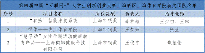 附件:第四届中国“互联网+”大学生创新创业大赛上海赛区上海体育学院获奖团队名单