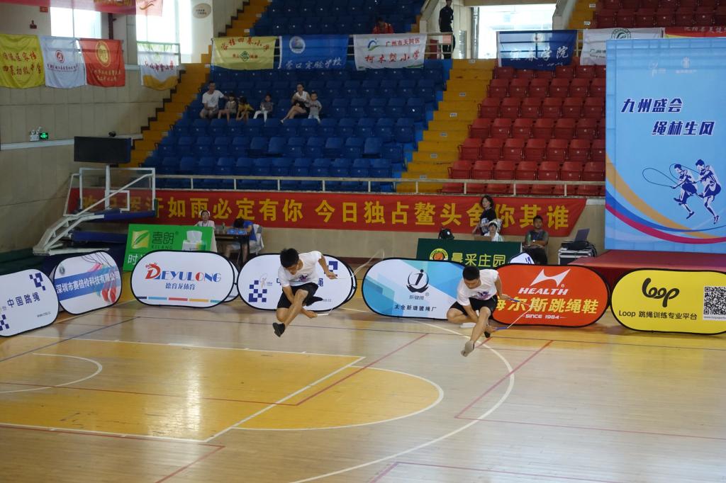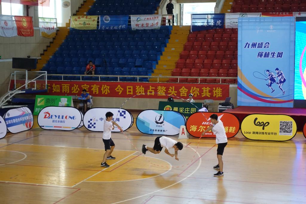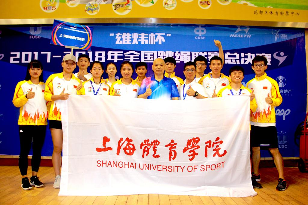 本网讯 2018年7月10日至15日,由国家体育总局社会体育指导中心、中国大学生体育协会、中国中学生体育协会主办的全国跳绳联赛总决赛在广州市花都体育馆成功举办,共有来自全国20个省、市、自治区的82支代表队842名运动员参赛,其中有北京体育大学、广州体育学院、福州大学、大连大学、山东师范大学、西南大学、成都大学、贵州师范学院等17所高校队伍参赛。上海体育学院花样跳绳队12名队员在领队刘树军和教练韩耀刚的带领下再创佳绩,在速度赛5个小项(30秒单摇、3分钟单摇、30秒交互、4x45秒交互、4x30秒单摇接力)、花样赛4个小项(个人花样、同步花样、车轮花样、交互花样)和集体自编赛共计三个大项10个小项中均斩获金牌。