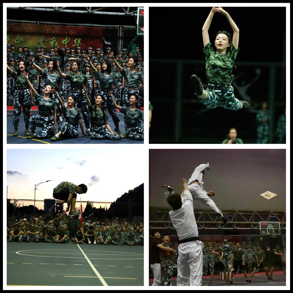 各连队表演结束后,教官们表演的《假如战争今天爆发》将红歌会推向了高潮。平日里教官给大家的印象都是严肃严厉的,但今天大家看到了教官除了“稍息、立正”,也能唱出嘹亮的歌声。