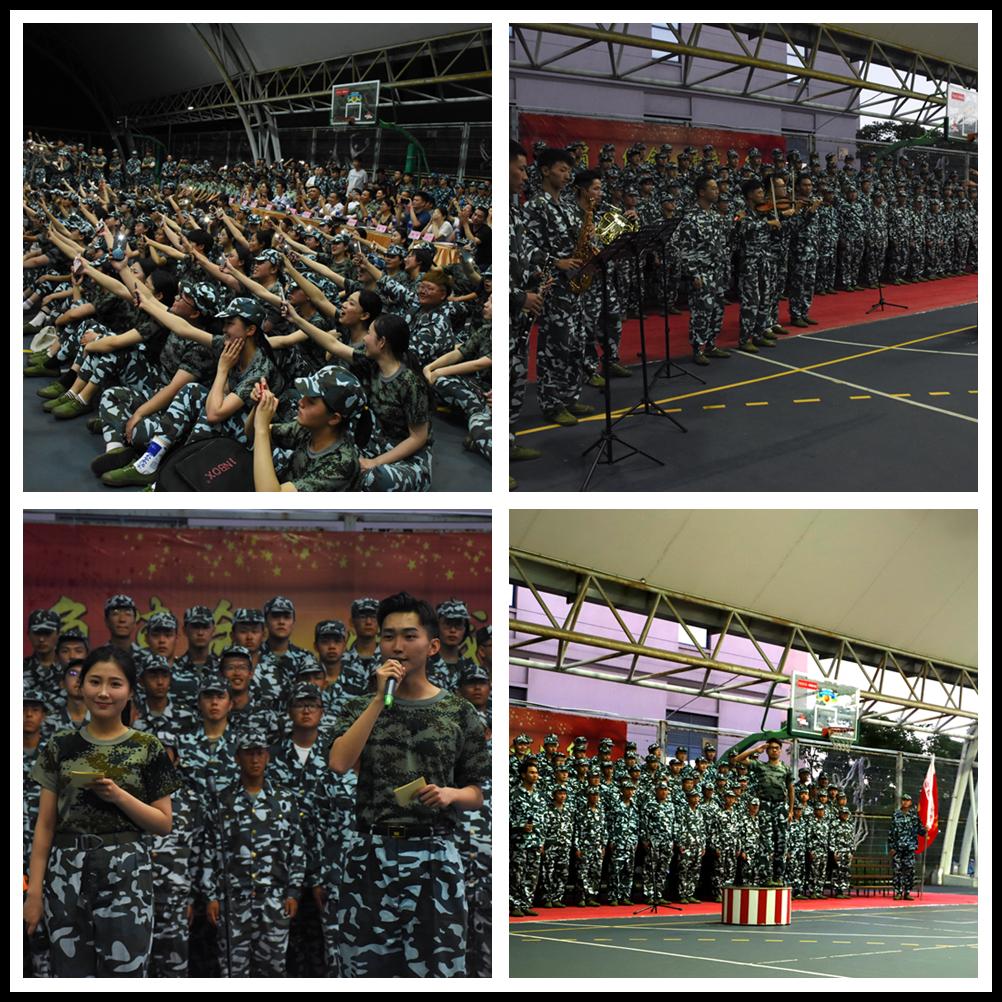 本网讯 7月16日晚,2017级本科生军训团红歌会在风雨篮球场隆重举行。