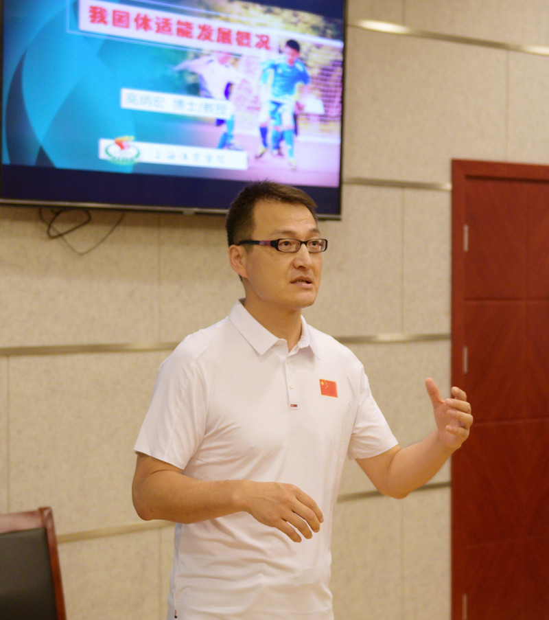 本网讯 7月25日上午,上海市青少年体育协会体适能分会挂牌仪式暨第一期青少年体适能教练员培训(认证)班开班典礼在体育教育训练学院1111会议室顺利举行,上海市体育局副巡视员杨培刚,上海体育学院副院长毛丽娟,上海市体育局科教(青少)处处长张漪,上海市青少年训练管理中心书记、青少年体育协会监事长顾伟,上海体育学院科研处处长、青少年体育协会体适能分会副会长吴雪萍,上海体育学院体育教育训练学院院长丁海勇,上海体育学院体育教育训练学院副院长、上海市青少年体育协会体适能分会会长高炳宏,上海市青少年训练管理中心副主任、青少年体育协会秘书长周战伟等应邀出席,仪式由吴雪萍主持。