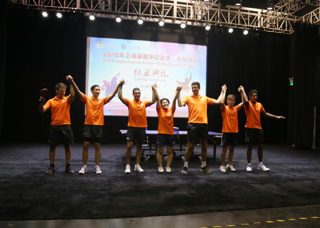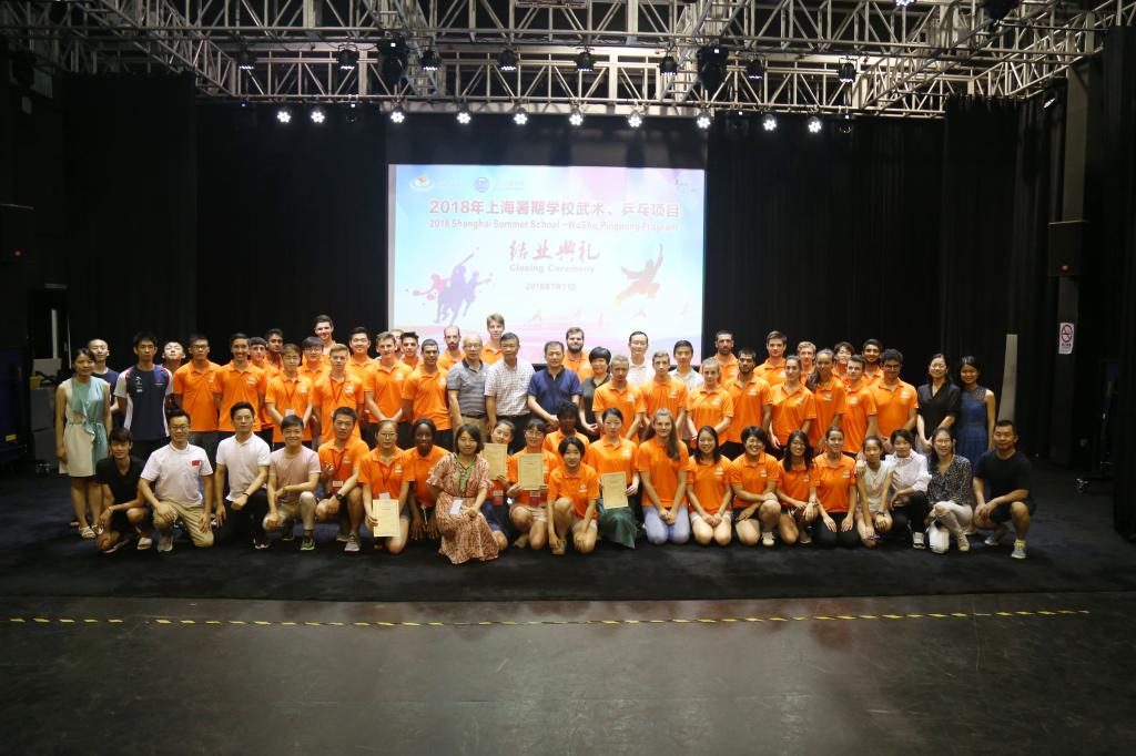 最后,王兴放,国际教育学院院长吴贻刚等老师颁发结业证书、优秀志愿者证书,在大家的喝彩与祝福中,2018年上海暑期学校武术、乒乓项目圆满结束。
