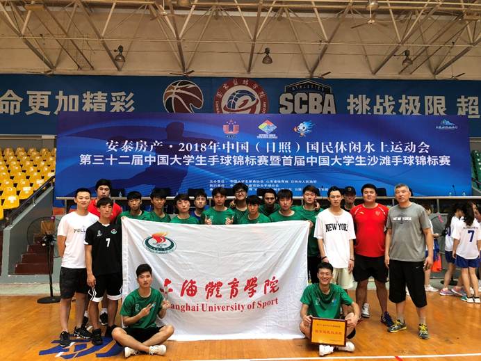 本网讯 7月21日至31日,第32届中国大学生手球锦标赛暨首届中国大学生沙滩手球锦标赛在山东体育学院日照校区、日照(万平口)海洋公园成功举行。上海体育学院男子手球队16名队员在领队裴雷、教练张耀铎、吴璟的带领下再创佳绩,获得本次锦标赛室内手球比赛丙组亚军,沙滩手球比赛丙组冠军的优异成绩,并获“体育道德风尚奖”荣誉称号。