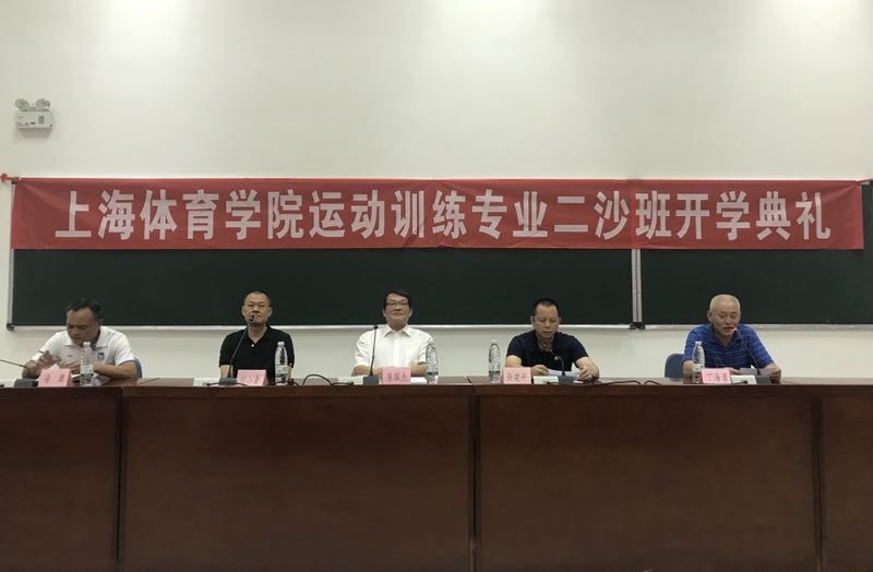 陈佩杰代表学校欢迎2018级“二沙班”新生入学,肯定了2016级、2017级学生的学习成绩,在介绍了上海体育学院近期取得的办学成果后,发表了热情洋溢的开学寄语。陈院长希望学生们充分利用“二沙班”这个优秀运动员体教结合的培养平台,通过面授、自学、远程教学等手段,学好上海体育学院优质课程,提升自身学习水平,并预祝二沙训练中心的佼佼者早日成为上海体育学院的硕士生、博士生。