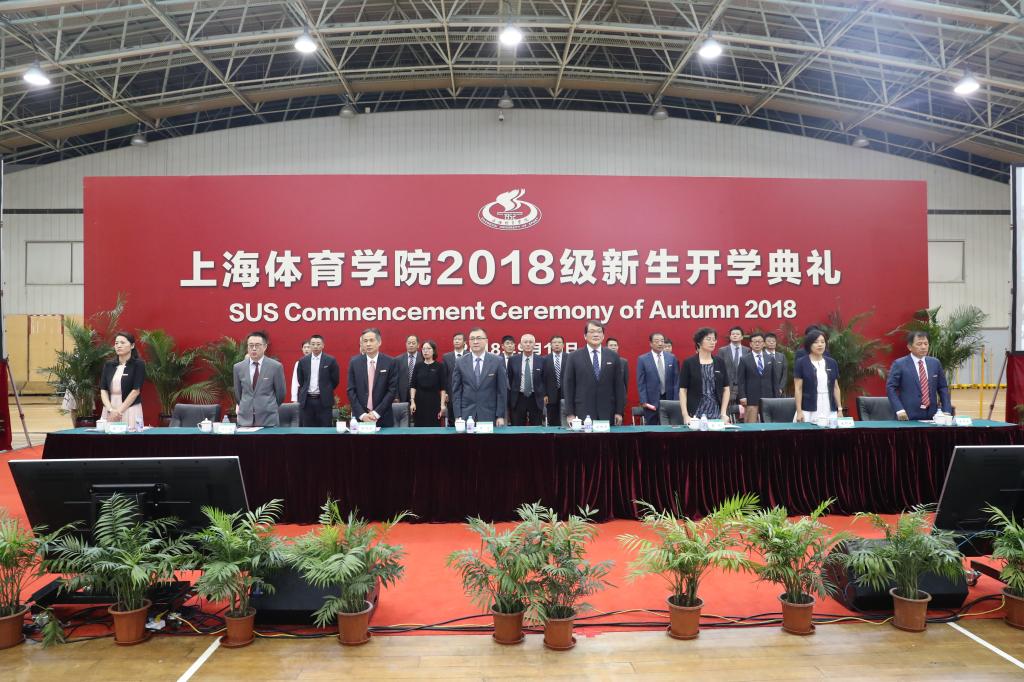 本网讯 9月19日上午,上海体育学院2018级新生开学典礼在上海体院综合馆举行,1800余名2018级新生参加开学典礼。党委书记李崟,党委副书记、院长陈佩杰,党委副书记、副院长陈晓峰,党委副书记、纪委书记詹萌,党委副书记、学院办公室主任杨玲,副院长施之皓、毛丽娟、王兴放出席典礼。中国乒乓球学院、国际教育学院、各二级学院、徐汇校区和附属竞技体育学校等负责人,教师代表,院学生会主席、院研究生会主席参加典礼。开学典礼由杨玲主持。