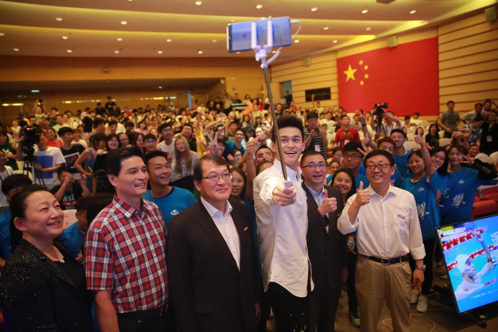 活动最后,孙杨与现场师生自拍留念。