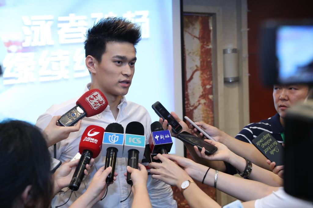 会后,孙杨和陈佩杰接受了媒体采访。