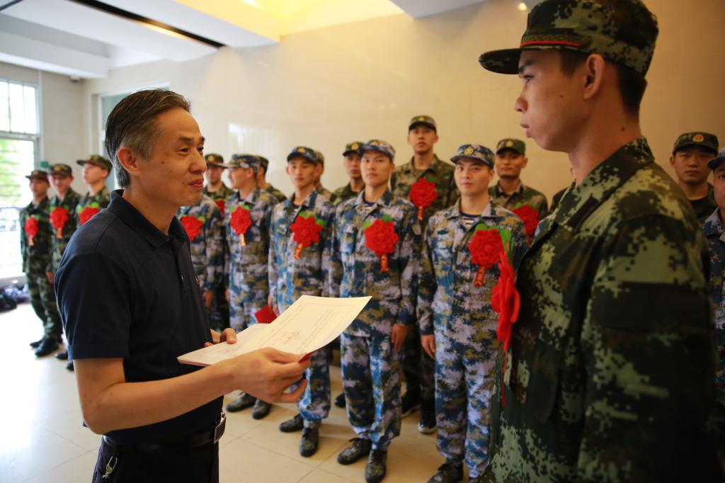 党委副书记、副院长陈晓峰在慰问新兵时,对即将踏上征程的新兵表示祝贺,并向新战士提出三点要求:一要尽快转换角色,二要坚定信念、牢记使命,三要保重身体、兼顾学业,成为有担当、有作为的绿瓦学子。