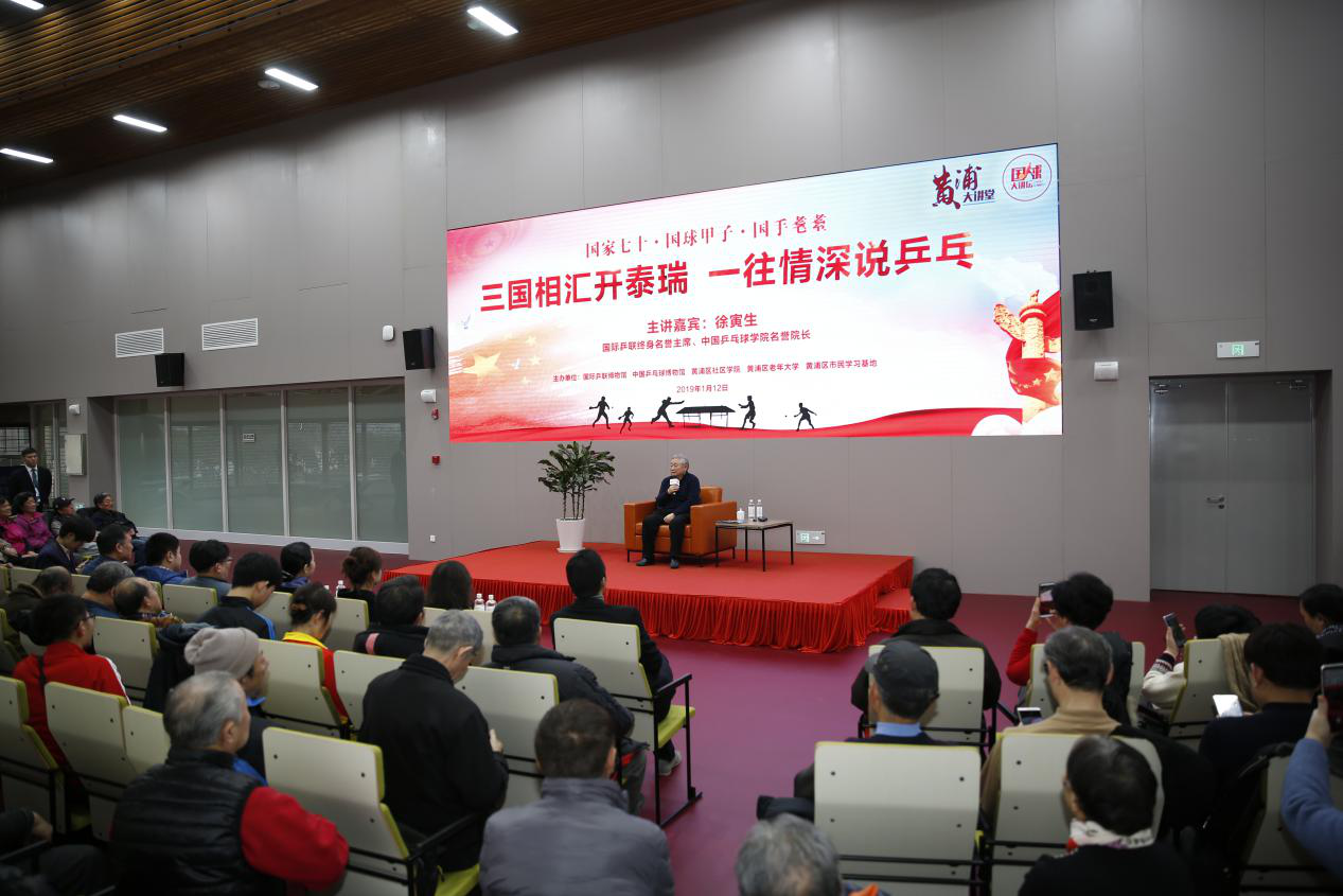 本网讯1月12日下午14:00,由国际乒联博物馆、中国乒乓球博物馆、黄浦区社区学院、黄浦区老年大学、黄浦区市民学习基地联合主办的“国球大讲坛”暨“黄浦大讲堂”系列活动,在“乒博馆”冠军堂开讲。国际乒联终身名誉主席、上海体育学院中国乒乓球学院名誉院长徐寅生作为本期主讲人,与现场观众分享了他一路走来的乒乓岁月。