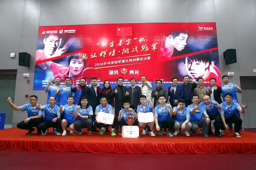 本网讯 1月20日,新生基金杯“见证辉煌·挑战冠军”2018乒乓球冠军擂主挑战赛年度总决赛暨颁奖典礼在国际乒联博物馆和中国乒乓球博物馆冠军堂举行!24位民间高手通过挑战赛的周赛、月赛、季赛逐级晋升,成功进入年度总决赛的激烈角逐。最终王子铭荣膺2018年赛事总冠军。国际乒联副主席、上海体育学院副院长、乒博馆馆长施之皓、上海市乒协主席陈一平、乒乓球世界冠军丁松、黄浦区体育局副局长潘敏虹、“乒博馆”执行副馆长顾郑军、“乒博馆”副馆长李拓恒、朱联,上海新生股权投资基金管理有限公司副总经理陆永华、上海斯莱国际贸易有限公司董事长王海等领导和嘉宾观看了总决赛并为优胜选手颁奖。