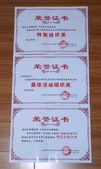 “乒博馆”特别组织奖、最佳活动组织奖(个人)和特色品牌活动